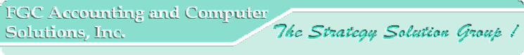 Our MissionBuild the complete Solution for our customers, first hearing his needs then analyzing and deploying the best and cost effective accounting solution. Finally we continue helping you to increase your revenues, minimize costs. Really in FGC Accounting and Computer Solutions, Inc. we are "The Strategy Solution Group"...